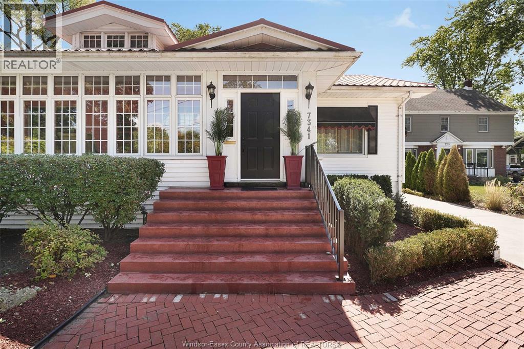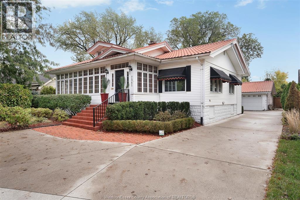 Built in 1900, this Riverside treasure continues to shine brightly, nestled among some of Windsor's most prestigious addresses along the coveted Golden Mile. Welcome to 7341 Riverside Dr E. — a captivating bungalow that seamlessly combines timeless charm with modern comforts. This distinguished residence features two inviting bedrooms and two full bathrooms, including a splendid primary suite with an ensuite bath and walk-in closet. The large, enclosed sunroom offers a tranquil retreat, while the expansive living and dining area boast gleaming hardwood floors and a cozy fireplace, perfect for gatherings and entertaining. The eat-in kitchen is equipped with built-in appliances, and the adjacent family room, complete with a convenient main-floor laundry center, enhances everyday living. The partially finished basement provides additional versatile living space and abundant storage solutions. Outdoors, you’ll discover a detached 2½-car garage and a verdant backyard oasis — an oversized retreat featuring an in-ground pool and a charming bunkhouse (with power) ideal for summer sleepovers and endless summer fun. Don’t miss this rare opportunity to own a one-of-a-kind home rich in history and elegance. (id:4555)