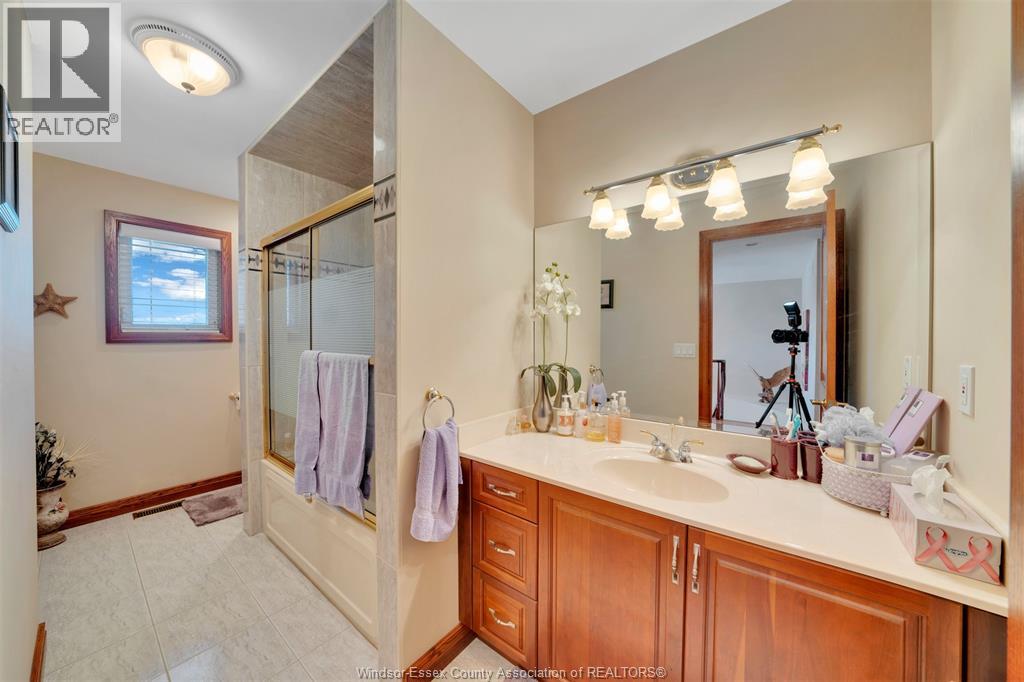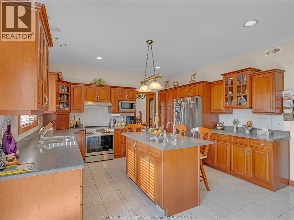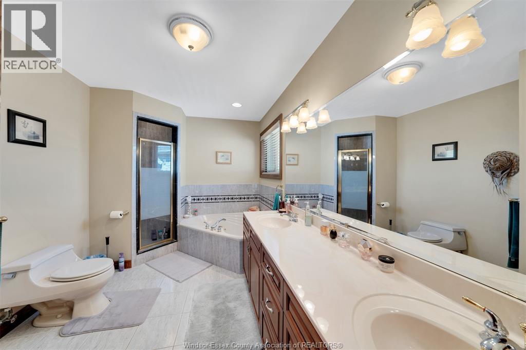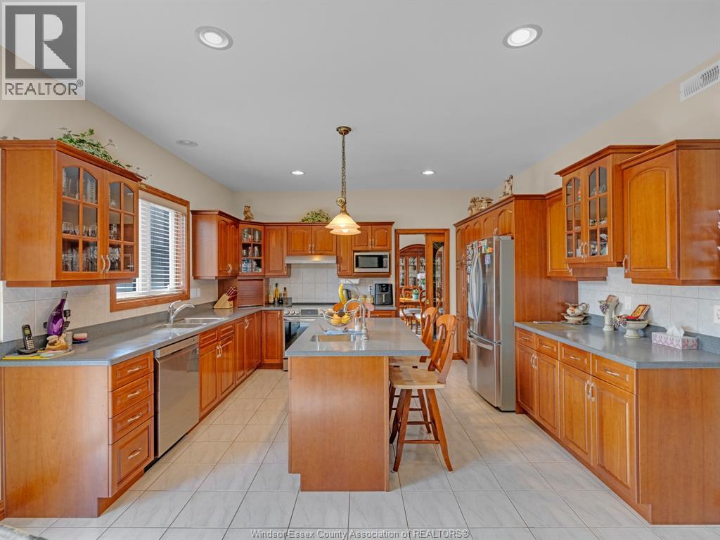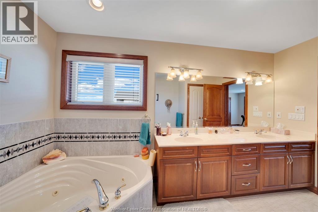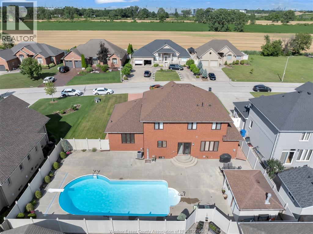 Custom built home located on a quiet cul-de-sac in a sought after neighbourhood in Tecumseh. Features 3 Bedrooms & 3 Baths, spacious foyer, lrg eat-in ktchn w/custom cherry wood cabinets, liv rm & dining rm w/ 11 ft ceilings & main flr laundry. Primary bdrm is complete w/ ensuite & jacuzzi tub as well as his & her walk-in closets. Heated in-ground salt water pool, shed, 2 car garage, massive circular concrete driveway, vinyl fence & sprinkler system. Min from Vista Academy, EC Row, LG Plant. (id:4555)